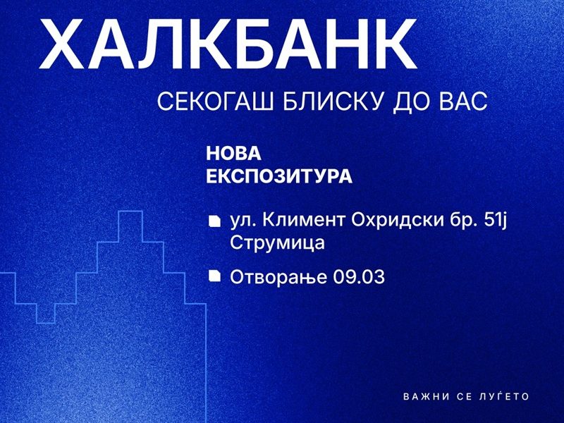 Од 09.03.2026 година, клиентите можат да ја посетат новата експозитура на Халкбанк во Струмица, која нуди современи услови за банкарски услуги и професионална поддршка за секојдневните...
