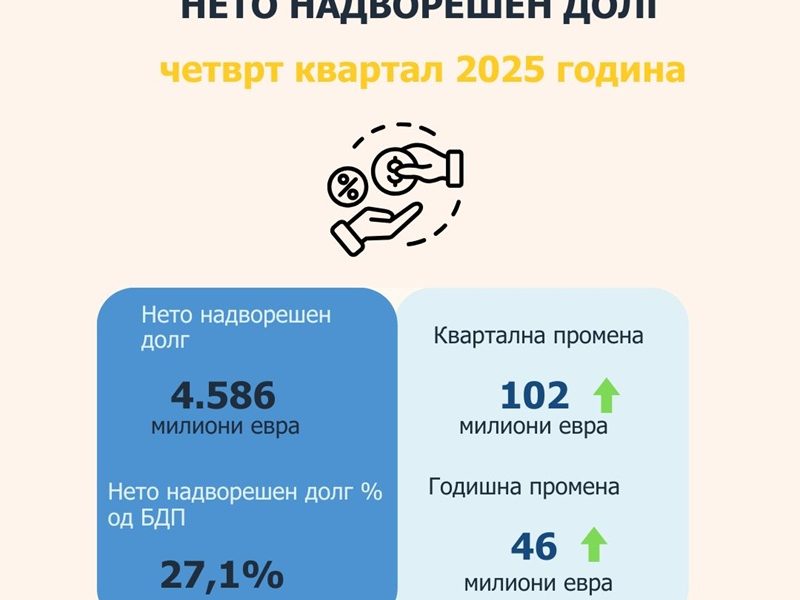 Нето надворешниот долг заклучно со декември 2025 година изнесувал 4,586 милиони евра или 27,1 проценти од БДП, објави Народната банка. Според податоците од централната банка, нето...