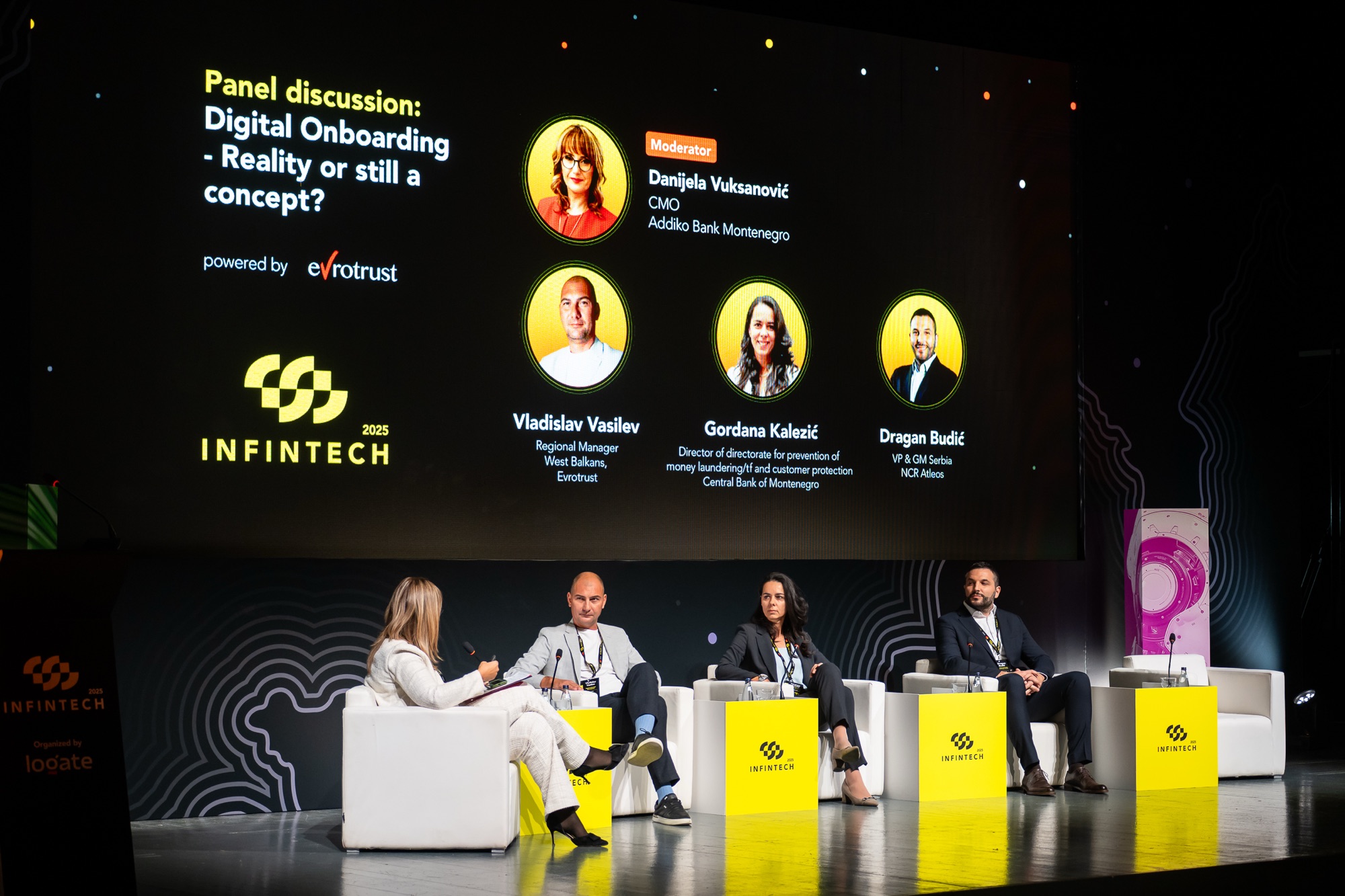 На конференцијата INFINTECH 2025, една од најочекуваните дискусии беше посветена на прашањето кое ја зафаќа целата финансиска индустрија во регионот – дали дигиталното онбордирање конечно преминува од идеја во реалност. Под модераторство на Данијела Вуксановиќ, од Addiko Bank Montenegro, панелот „Digital Onboarding – Reality or still a concept?“ обедини претставници од банкарскиот сектор, регулаторите и технолошките партнери, кои дискутираа за реалните чекори, предизвиците и иднината на дигиталното вклучување на клиентите.