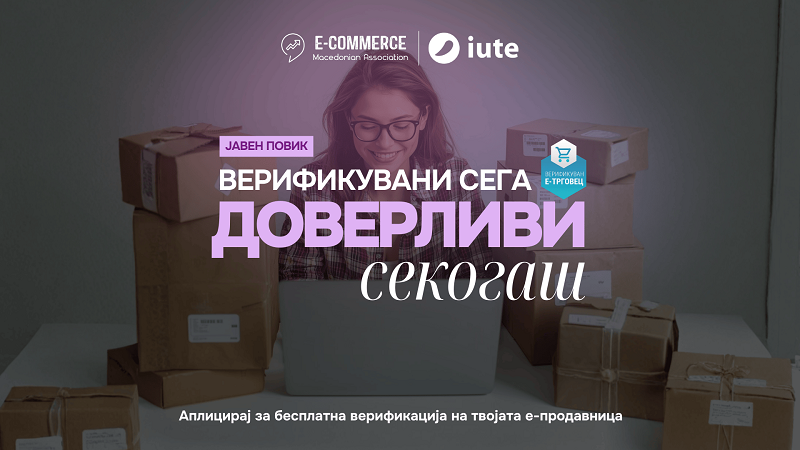 Асоцијацијата за е-трговија (АЕТСМ) објавува јавен повик за бесплатни верификации на е-продавници за стекнување со симболот на доверба во е-трговијата – Беџ за верификуван е-трговец, во рамки на кампањата „Верификувани сега, доверливи секогаш“, која се реализира со поддршка на ИУТЕ Македонија.