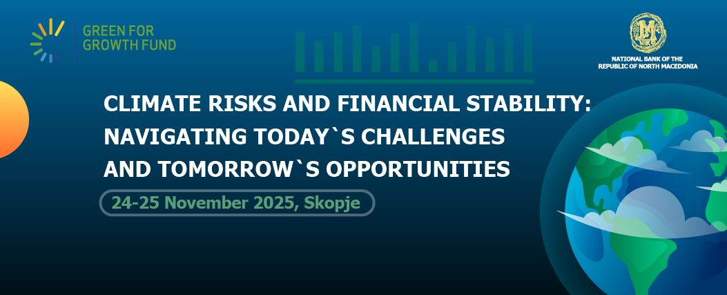Народната банка и Фондот за зелен развој (GGF − Green for Growth Fund) организираат Конференција за климатските ризици и финансиската стабилност, којаштоќе се одржи на 25 ноември во Скопје. Настанот претставува значаен чекор кон унапредување на дијалогот и поддршка на финансискиот сектор во приспособувањето на економијата кон зголемените климатски предизвици.
