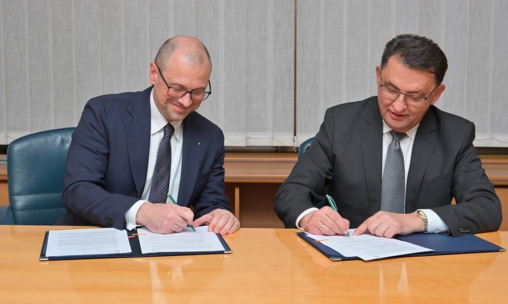 Гувернерот на Народната банка, д-р Трајко Славески, од една страна и претседателот на Управниот одбор на НЛБ д.д. Љубљана, Блаж Бродњак и членот на Управниот одбор...