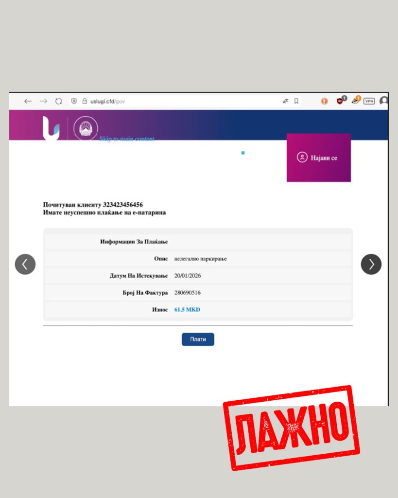 Стопанска банка АД – Скопје информира дека дел од нејзините клиенти добиле сомнителни SMS, Viber и e-mail пораки со лажни известувања за наводна уплата на сообраќаен прекршок од МВР, поврзан со Safe City системот.