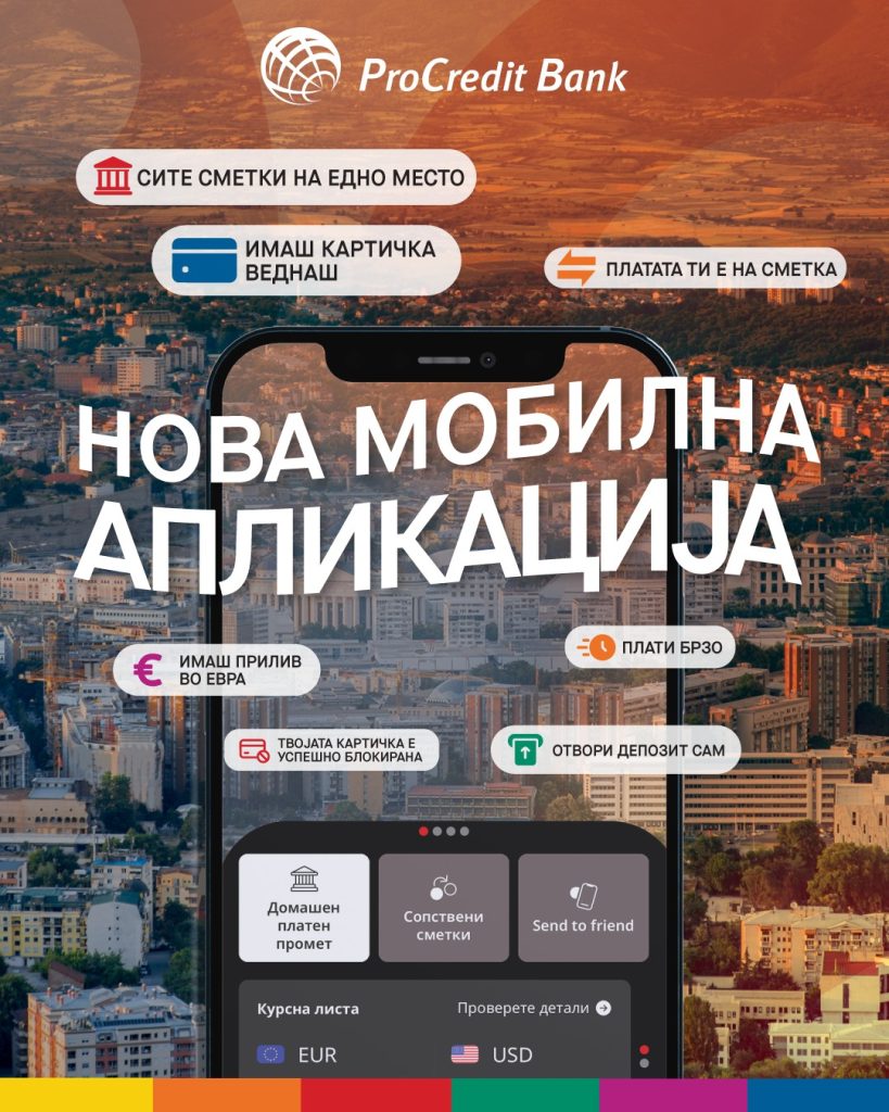 Мобилната апликација на ПроКредит Банка е достапна за преземање на App Store и Google Play, овозможувајќи им на клиентите модерно, брзо и сигурно банкарско искуство, секогаш и насекаде.