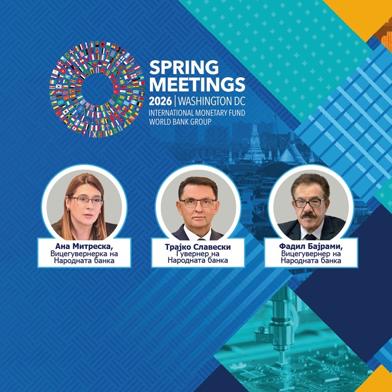 Гувернерот Славески истакна дека Народната банка води претпазлива и конзистентна монетарна политика, насочена кон одржување на ценовната и финансиската стабилност. Притоа, тој нагласи дека Народната банка внимателно ги следи светските движења и нивното влијание врз домашните показатели, заради навремена и соодветна реакција преку расположливите инструменти. На состаноците се разгледа и новата монетарна рамка на Народната банка, со која се овозможува поефикасно и пофлексибилно водење на монетарната политика, што е особено важно во услови на ненадејни и неповолни промени во економското окружување.