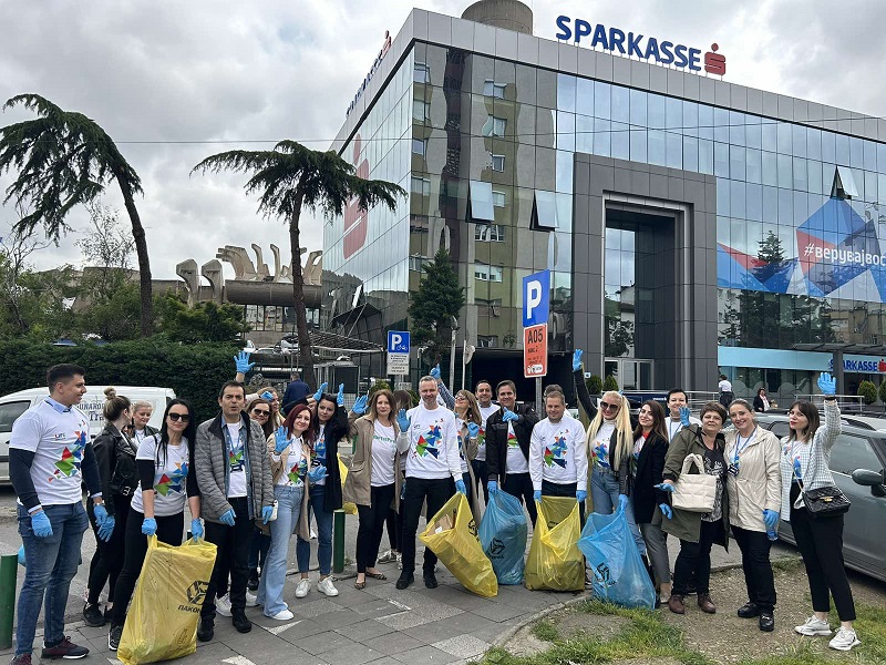 Вработените во Шпаркасе Банка беа во поход на чистење во реонот околу Кејот на Скопје и Централното градско подрачје и успејаа да соберат голема количина на отпад и да придонесат за почисто Скопје.