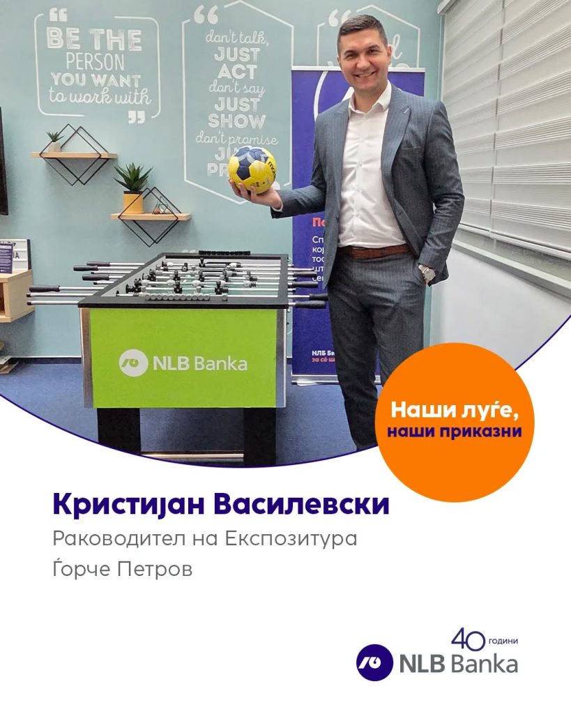 Кристијан Василевски, раководителот на Експозитурата Ѓорче Петров во НЛБ Банка АД Скопје е пример за успешен баланс меѓу професионалниот и спортскиот живот. Со девет години работно искуство во банкарството, неговата посветеност, професионалност и лидерски способности секојдневно се одразуваат во резултатите што ги постигнува со својот тим.