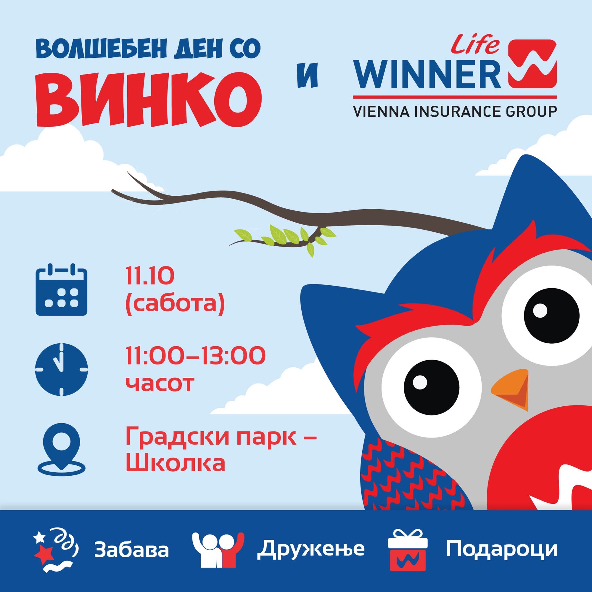 Во сабота, на 11 октомври, од 11:00 до 13:00 часот, Градски парк – Школка ќе биде исполнет со детска смеа, игра и позитивна енергија. Таму ќе се одржи семејниот настан „Волшебен ден со ВИНКО и Винер Лајф“, наменет за најмладите и нивните семејства.